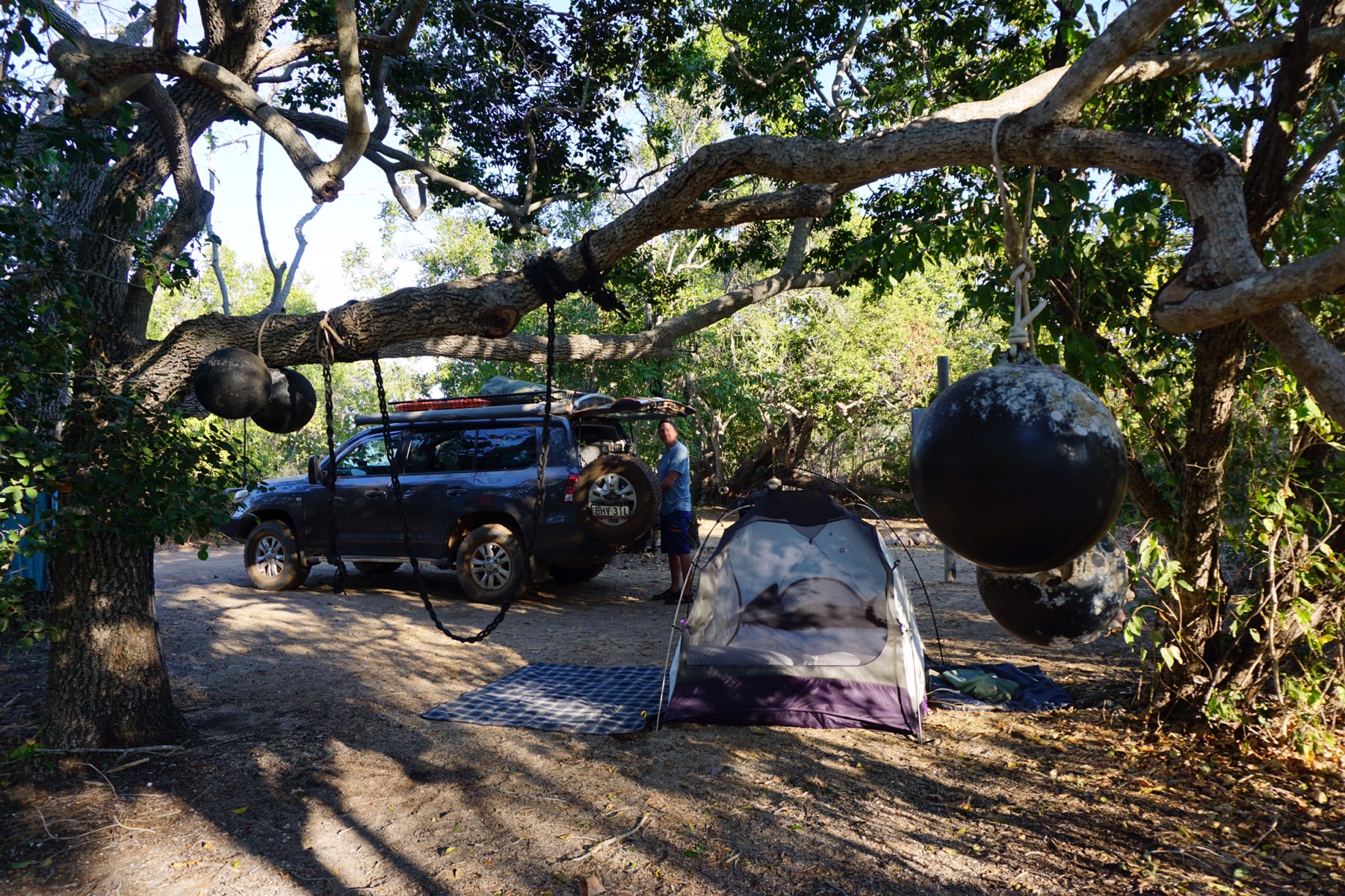 We set up the awning on the car, and leaped into the bay for a swim. – crystal clear waters, sand so soft it felt like velvet underfoot, and hardly another soul to be seen.