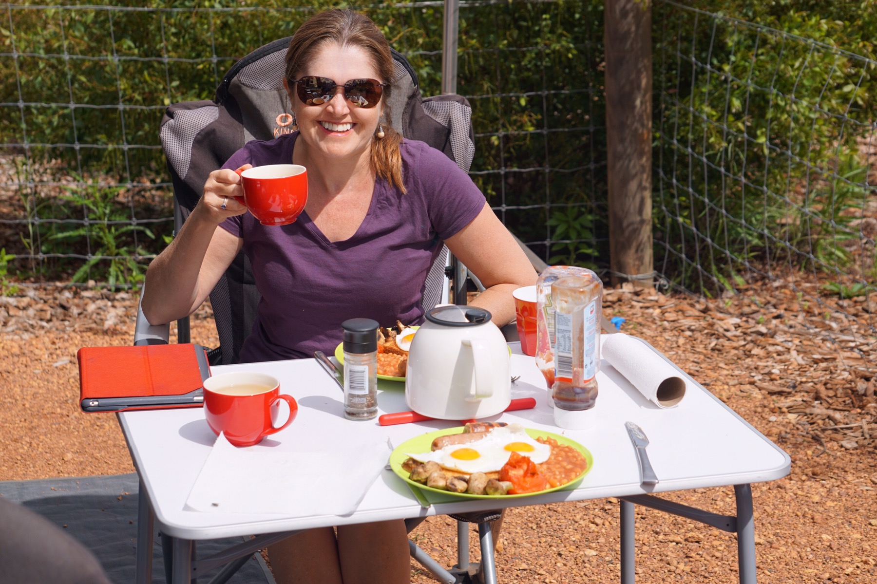 So caravan dropped off, we had a day to fill. A breakfast spot by the beach, a mushroom medley for madam (supposedly dairy free – the after effects proved not) and kippers for me (oh yes) and we were set up. A final top-up trip to T2 was called for, one simply can’t travel without some fine herbal and fruit teas. We did stop at a park to give Tassie a stretch, but it was rather too open and dogified for her taste.