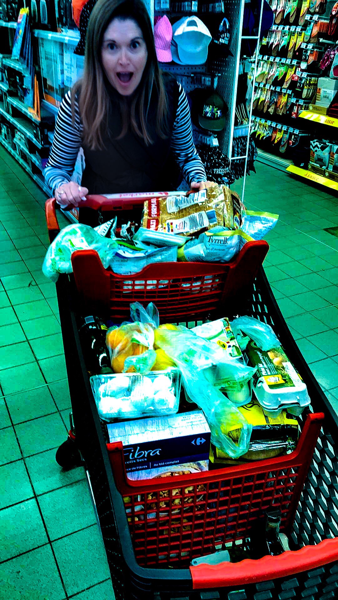 We drove to the town of Soissons where there was a choice of large supermarkets to choose from. There we did a huge shop for 10 people – tomorrow is Sunday and French shops will be closed, and we are joining a group of friends who are staying nearby in a house. Somehow we managed to make a whole trolley load of purchases disappear into Truffy, and set off for our night’s destination.