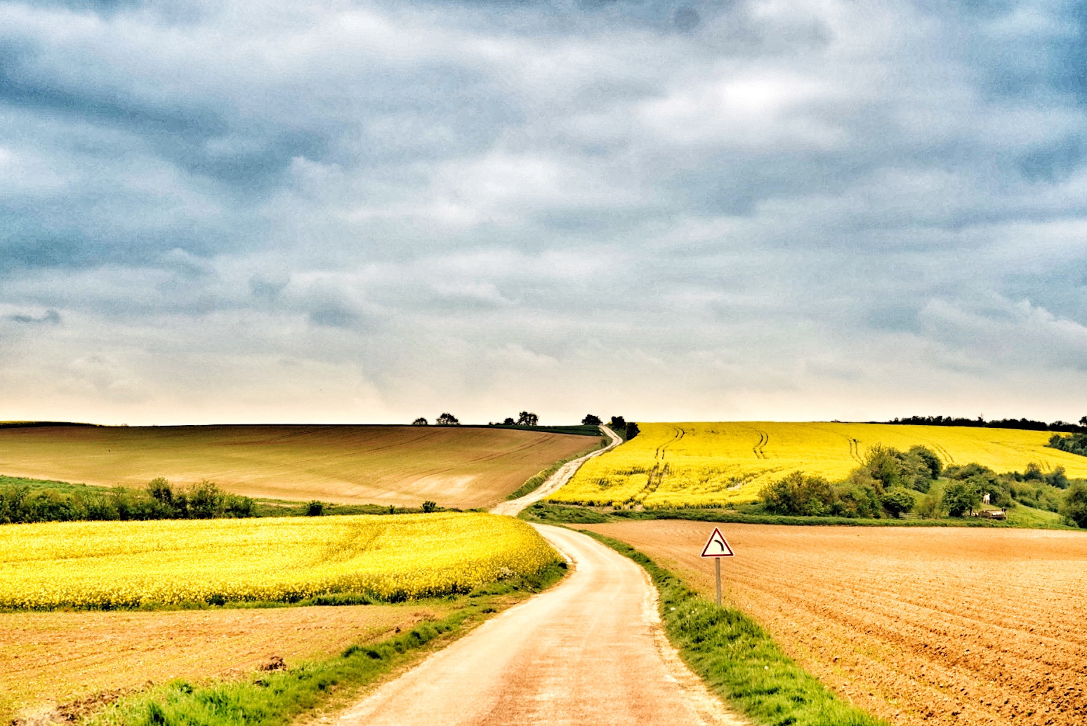 Picturesque patchwork of fields on our driveDriving along a straight Roman road