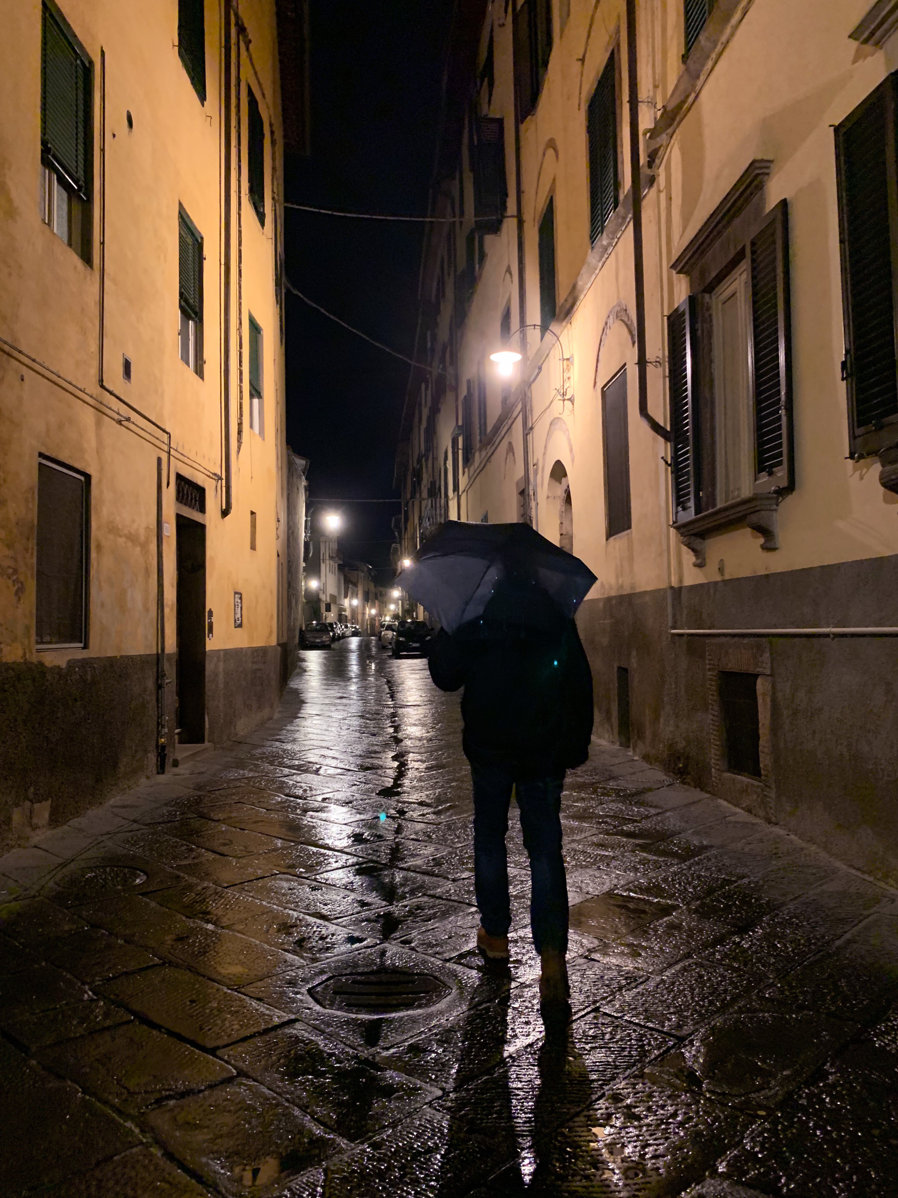 Sunday: It was only a short drive down into Lucca, and our chosen sosta for the night, behind a mechanic’s garage a ten minute walk from the city walls. We parked up and decided to explore on foot, given the threatening skies and promise of forthcoming rain.