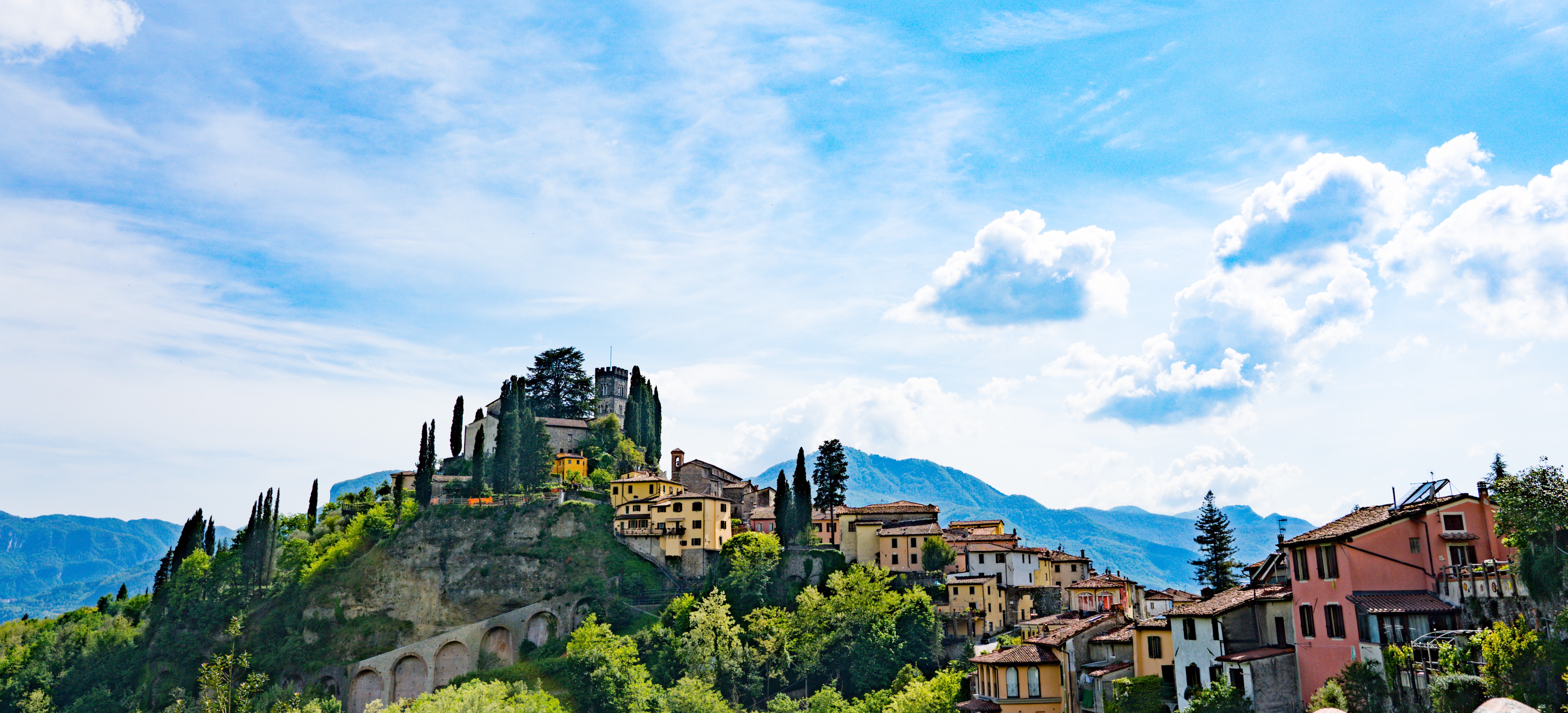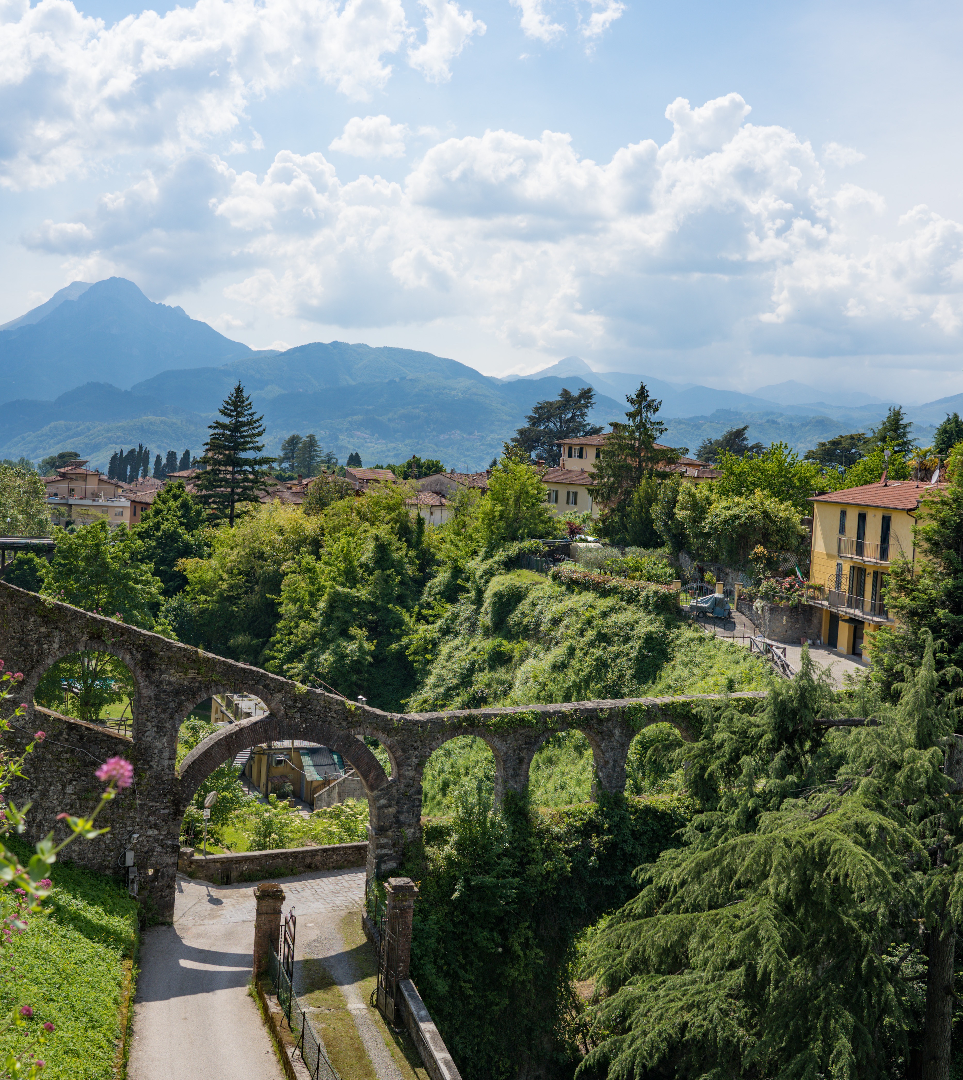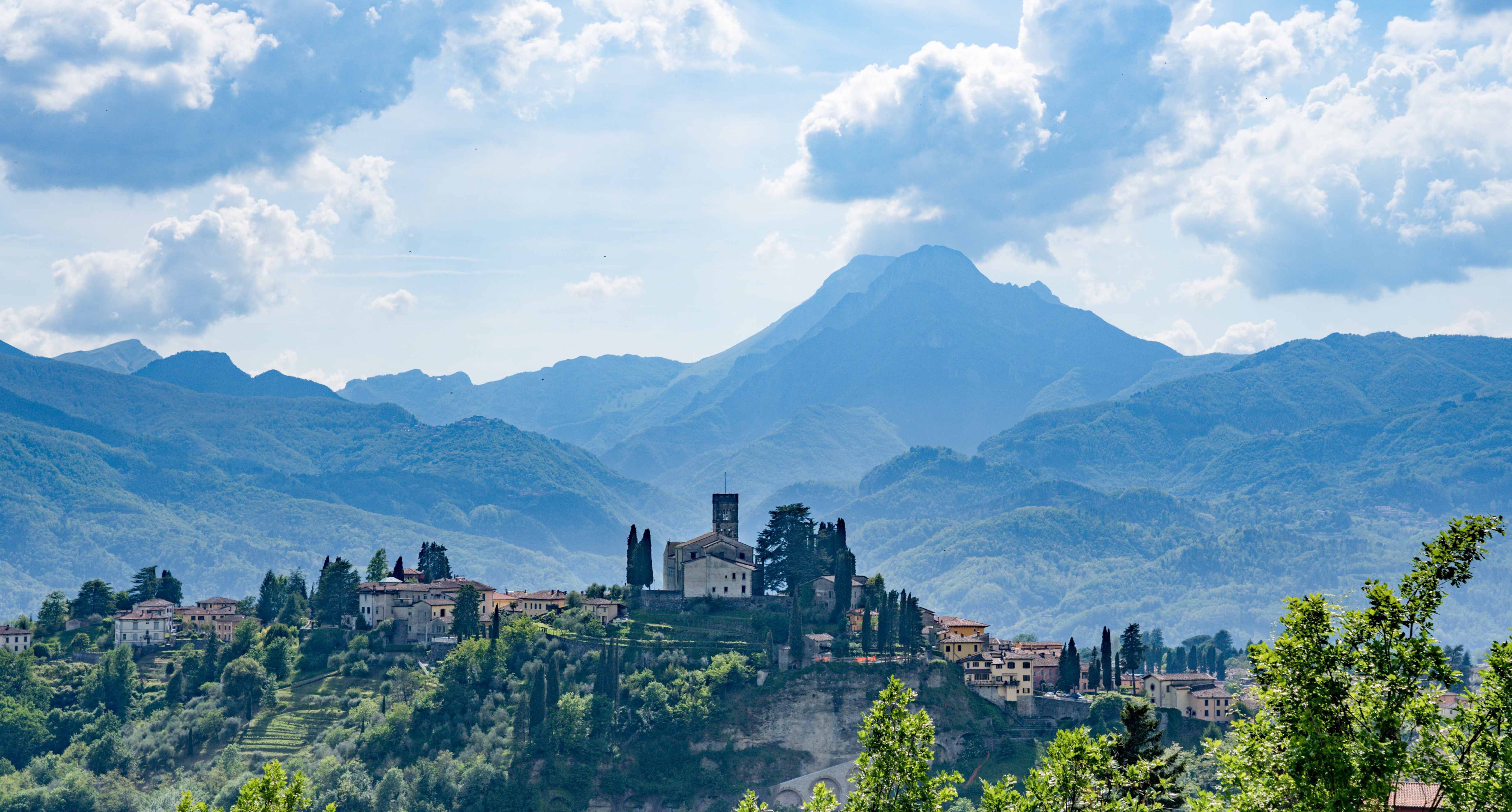 Barga, perched up on the hillsidePania della Croce, a mountain of the Apuane Alps dominates the skyline