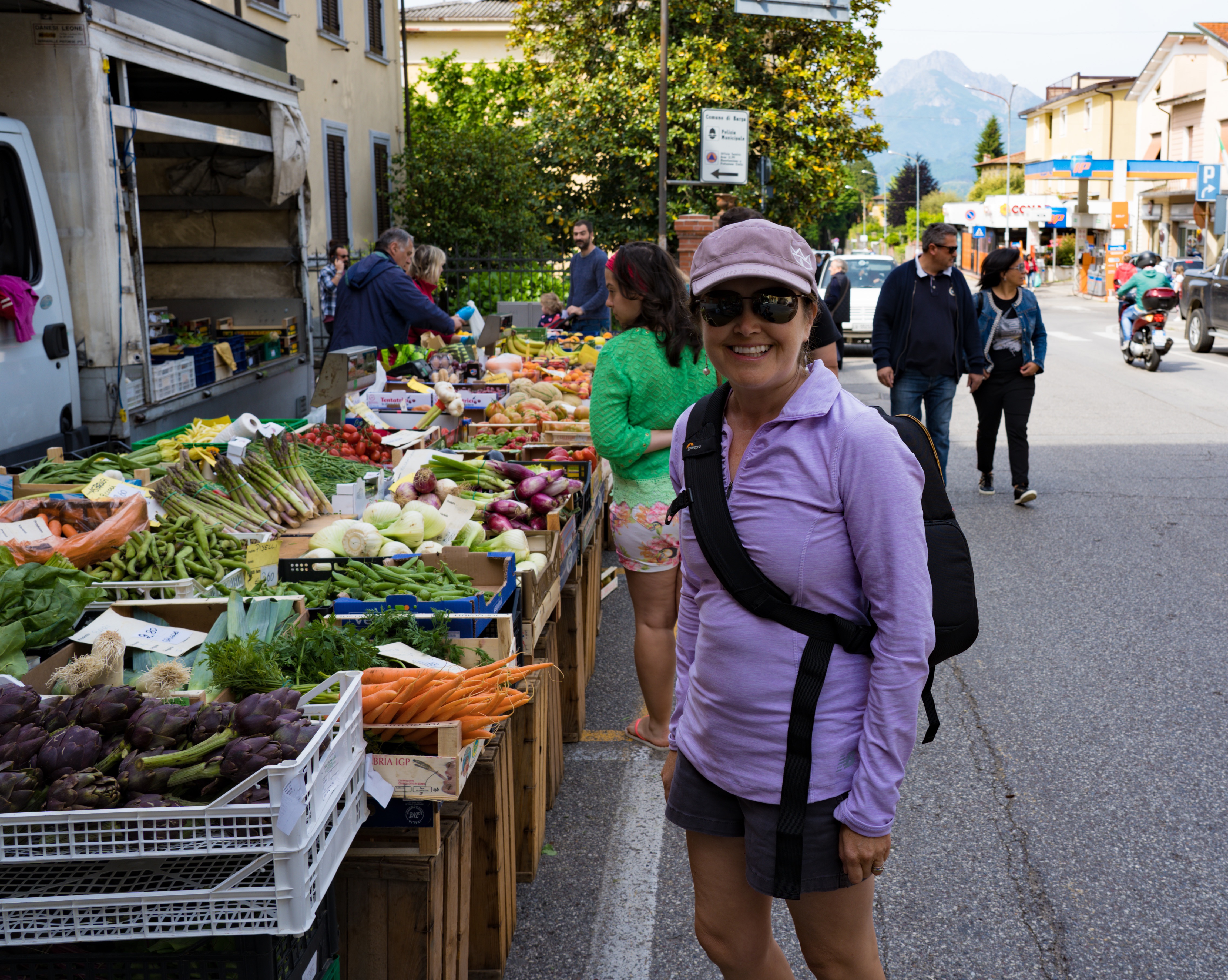 Wow – after spending so many years in a country that’s basically flat with a few bumps, it thrills us to see mountains like this. I headed off into the village to source breakfast and discovered it was market day. Catherine’s “fear of missing out” kicked in and she joined me to pick up some local goodies.