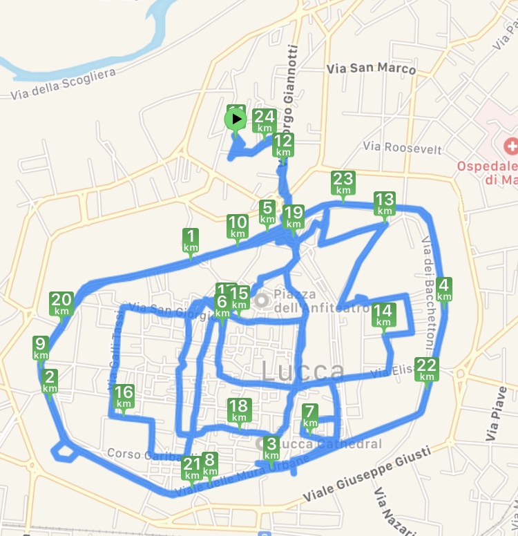 Sunday: It was time to leave, and that meant no HGVs on the roads today, another pleasant change from what we’re used to in Australia. They are banned in Italy from Sunday travel at slightly different times depending on the time of year. What a relief on some of these twisty roads! We are now heading into Lucca, but that’s for Catherine to share.