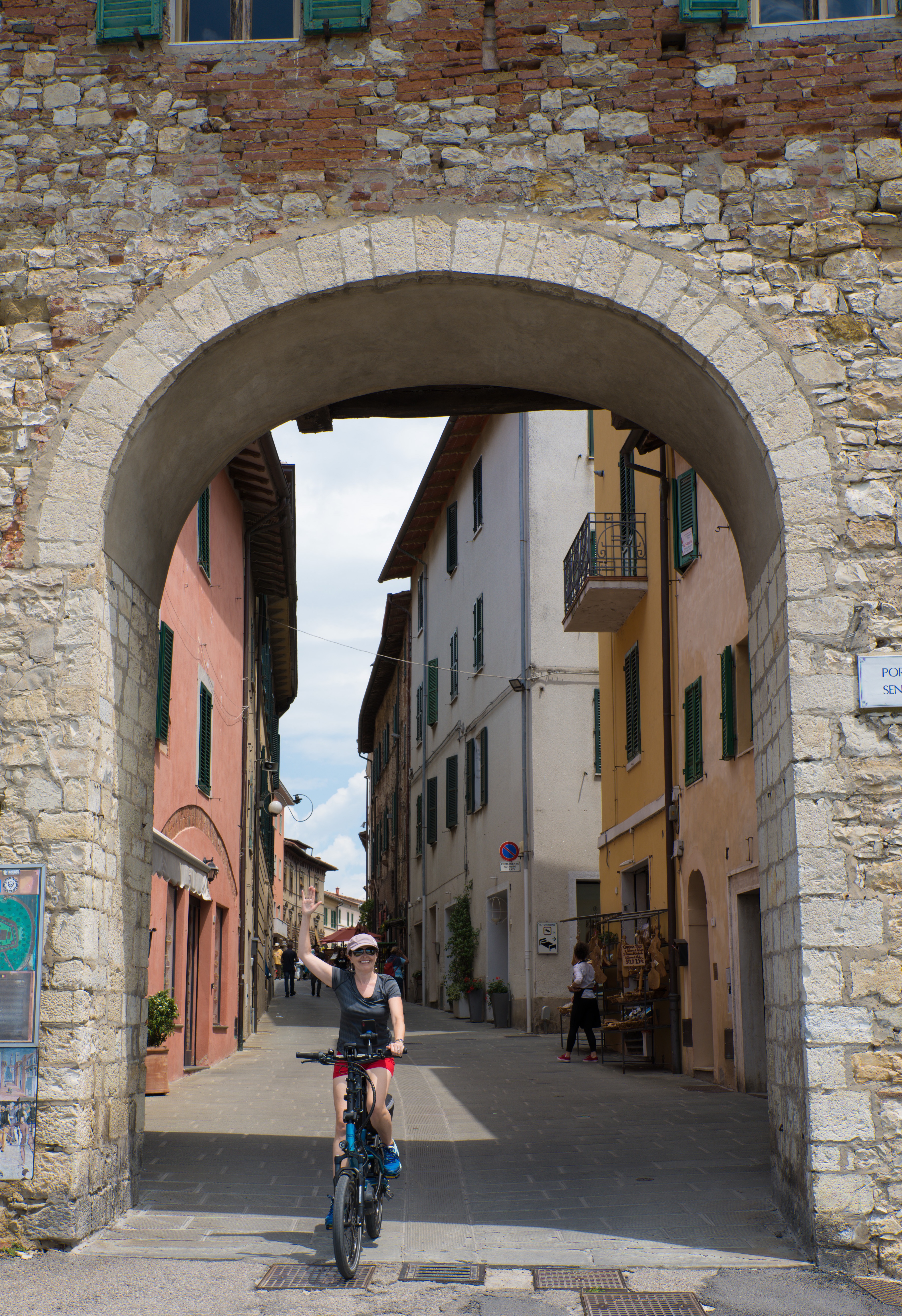 As we rode up through the streets, very thankful for the electric motors helping us on our way, we passed a whole mixture of stone archways, pillars and building styles from throughout the ages.