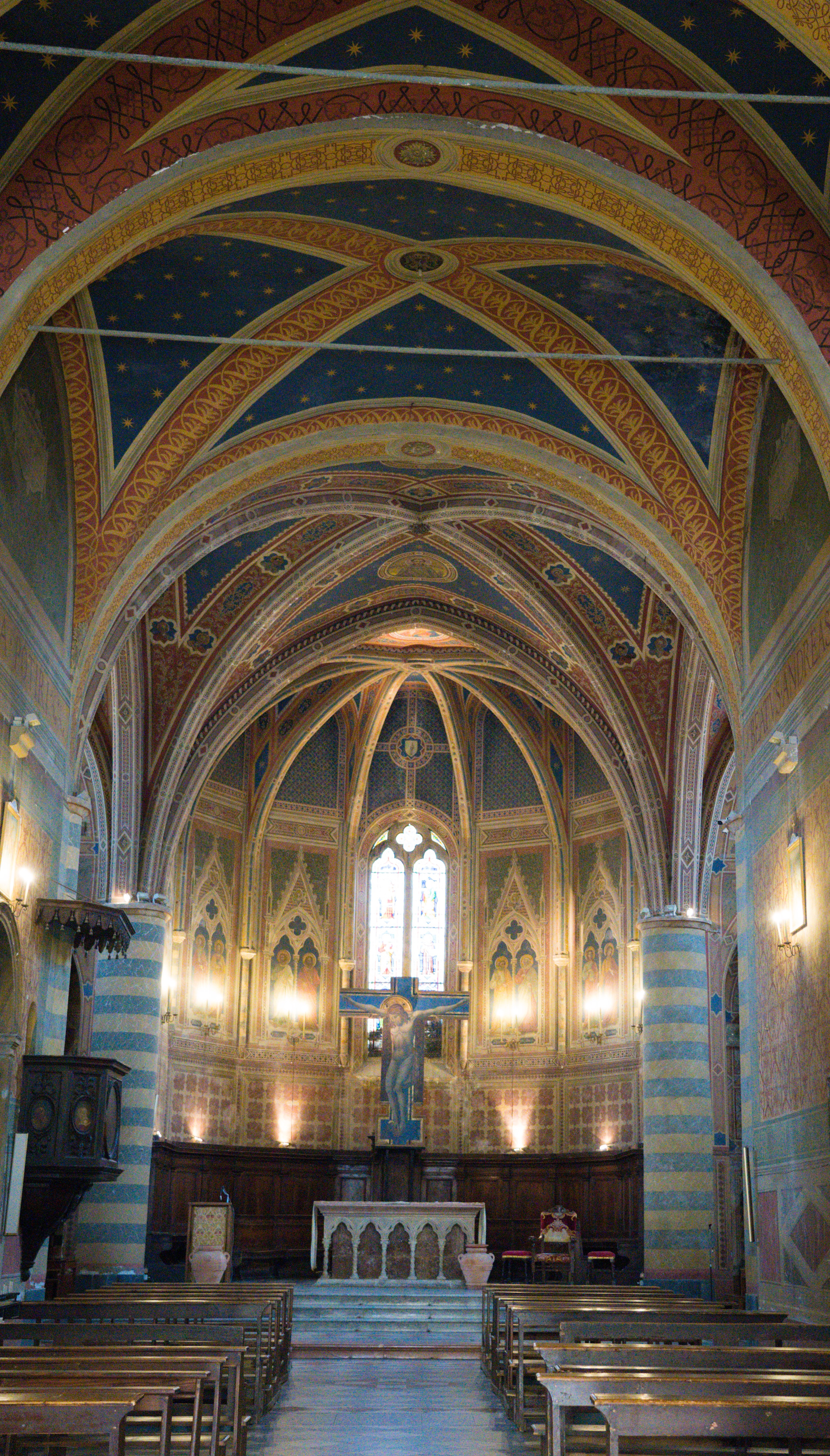 The most famous of all the churches is probably the biggest, Basilica of St Francis. It is also the most visited, with coach trips heading here just to see the artwork here. I recall visiting while an art student at university, way back in February 1990. The temperature was slightly different then, I can tell you – think snow flurries and bitterly cold wind! I decided not to go back in, but did a fly by on the bike to remember how it looked.