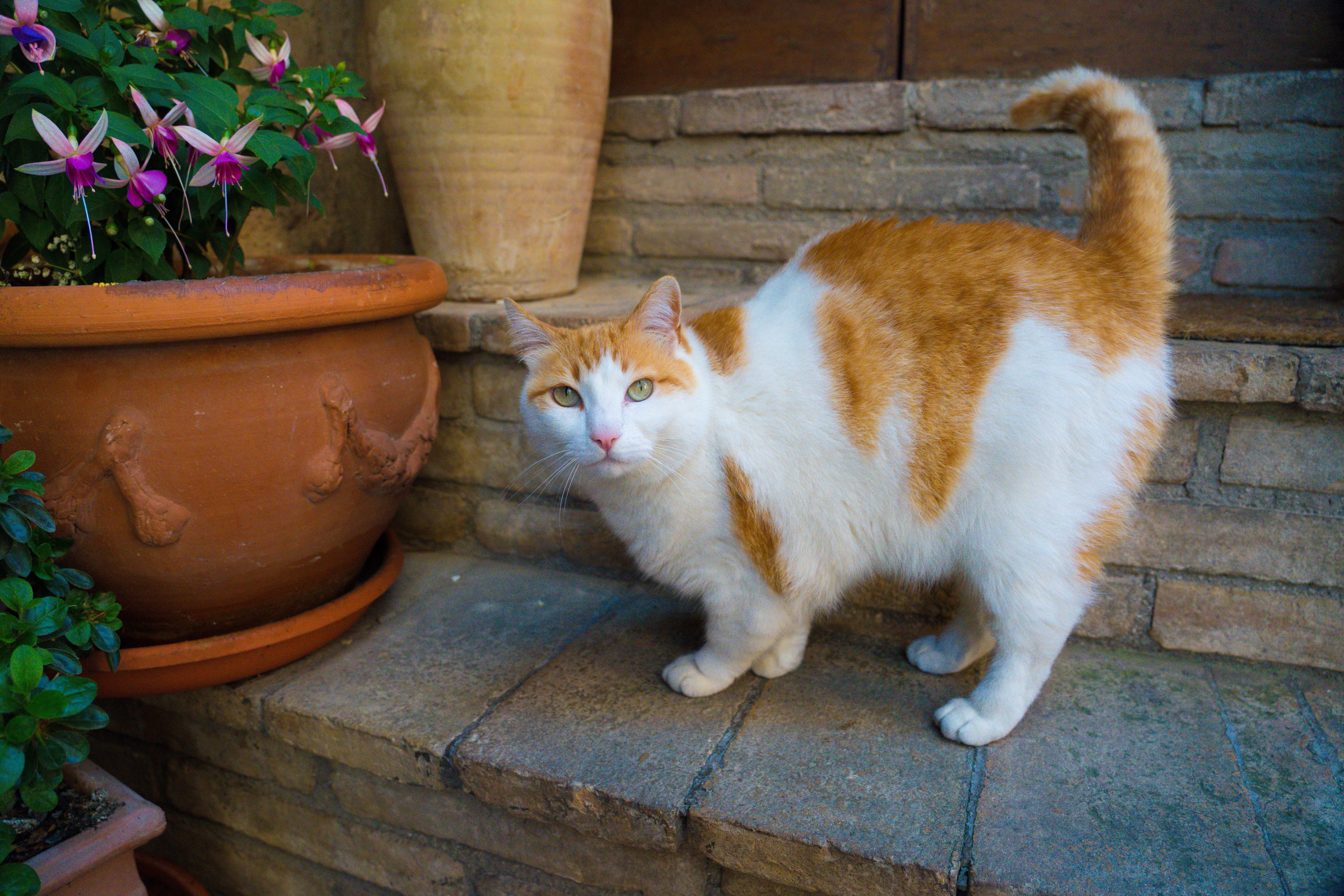 Fat pheasant in amongst the olive groves on our climb upMay I have some treats?Yes…Mr A does carry cat treats in his bag!We discovered Italian cats know the universal sound of cat treat bags…