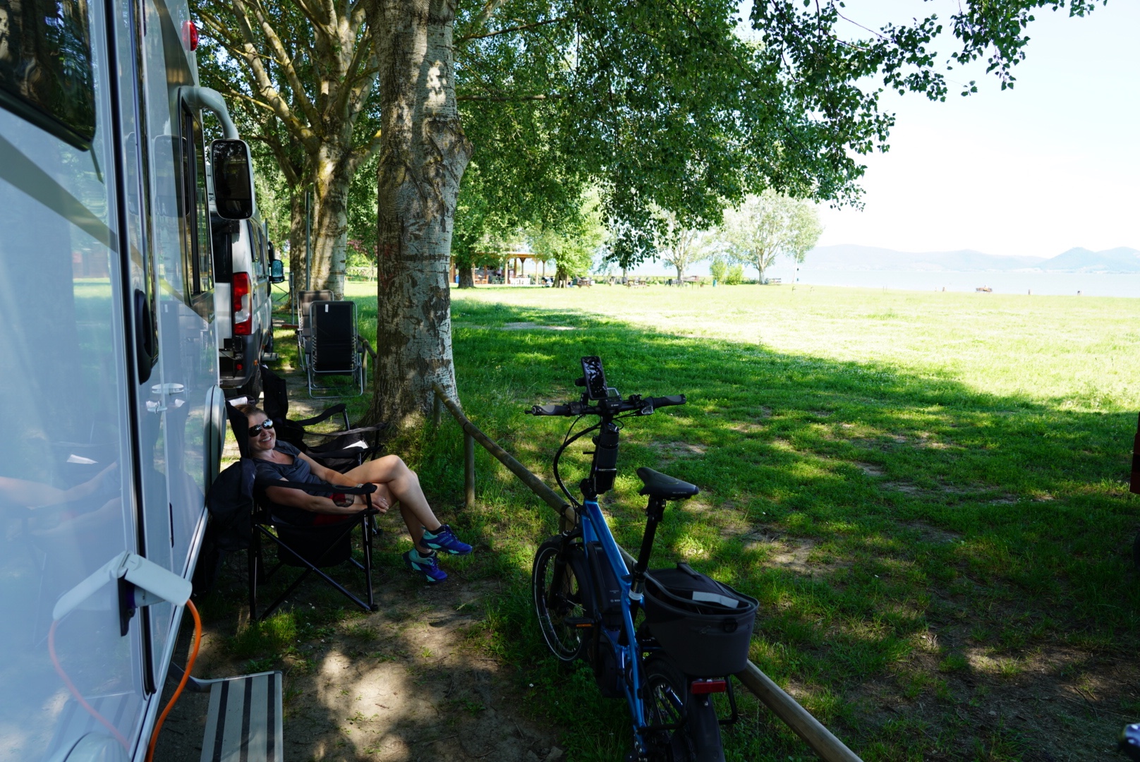 Instead we packed up and hit the road, driving just over an hour south-east from Florence to Lake Trasimeno. At 128 square kilometers surface area, Lake Trasimeno is the fourth largest lake in Italy (slightly smaller than Lake Como, the third largest). The town I selected purely on the reviews of where to stay – the lakeside sosta sounding peaceful and picturesque – just what the doctor ordered.