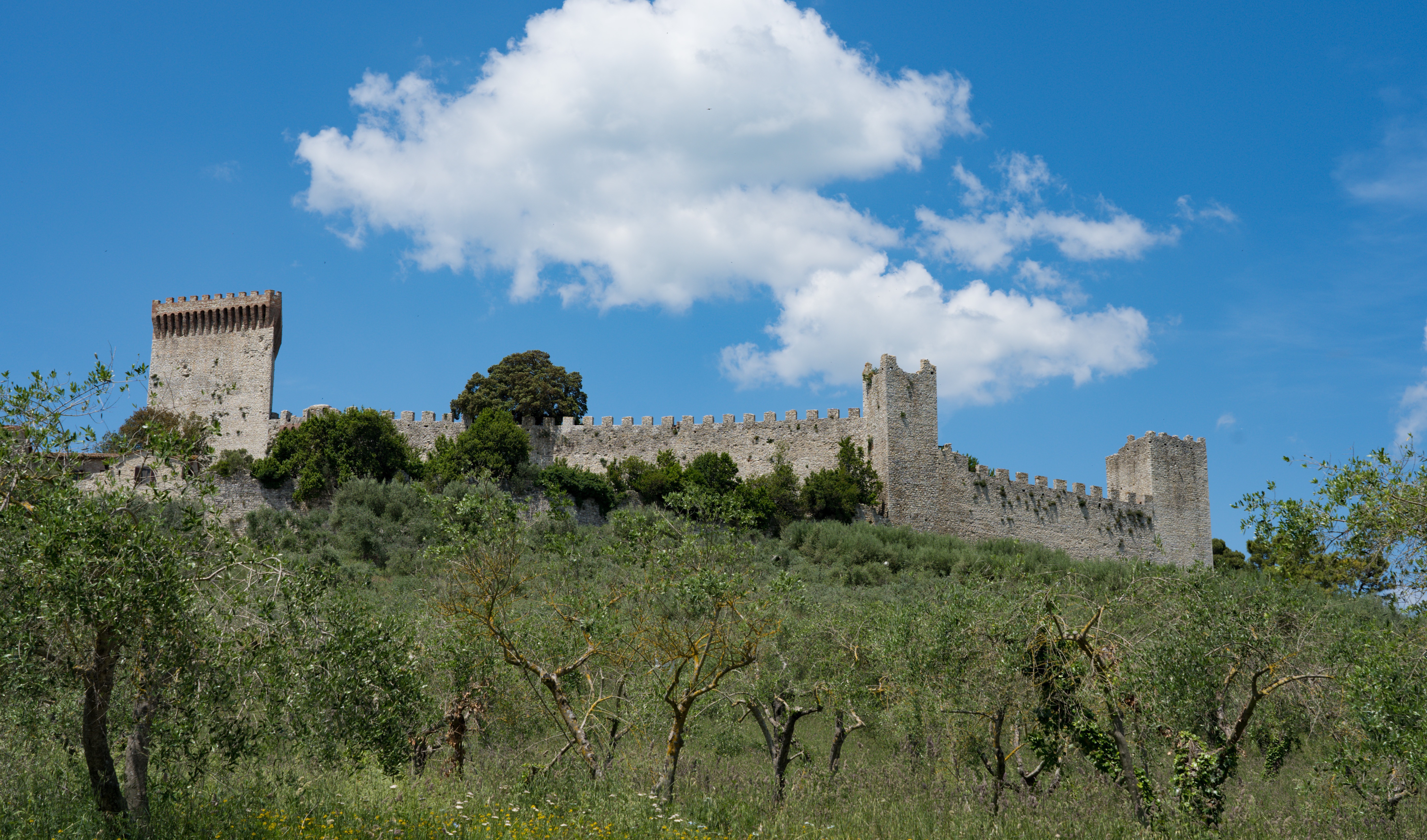 ‘Castle of the lion’ – which later became Castiglione…Looks like a great spot for moonlight cinemaRemains of round towersAncient olive trees cast strange shadows with their near hollow trunks