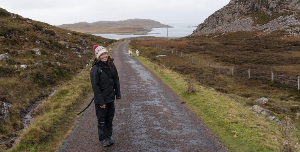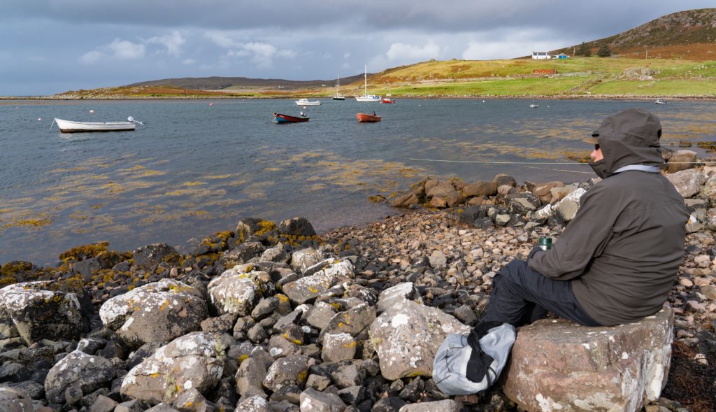 Sensing a break in the rain, we pulled on our wet weather gear and went for an explore. We walked down to the next bay, Old Dornie.