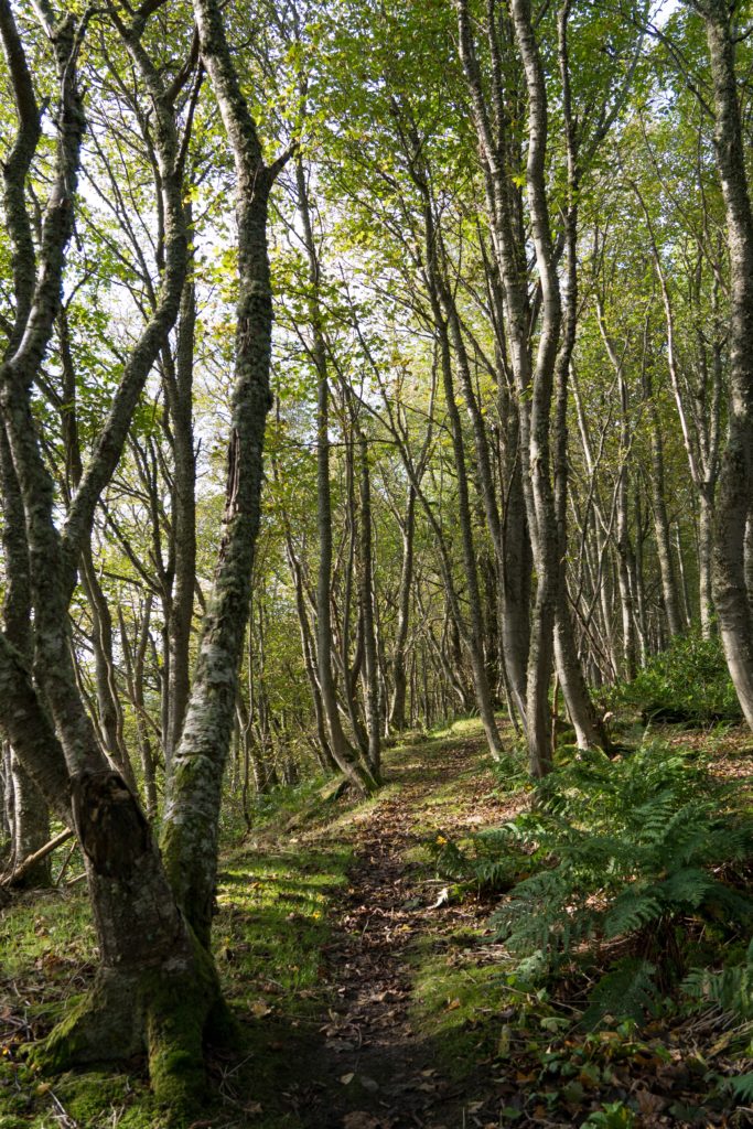 Beautiful views out to sea at every turnThe delicate pink of the ever present heather adds a splash of colour to the greenMore lovely views as we reach the next bayHeading inland through a million shades of greenThe next bay around is equally unspoilt With every cloud the scene changes constantlyLocal lady Isabel needed a hand with 15 year old Lucy who decided she wasn’t up for walking any more