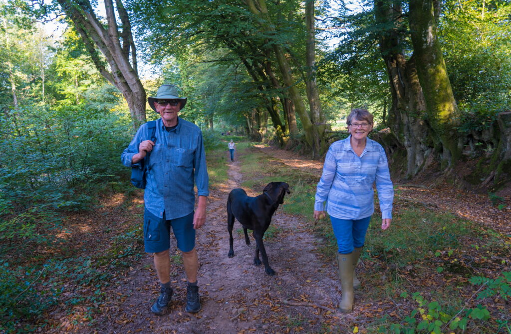 We have walked from our front door half a dozen times now and are still finding new routes, helped by the Komoot app, which shows all the footpaths and bridleways, and enables easy planning of walks. For instance, I randomly picked Dalford, a little village 10 minutes drive away, and Catherine used Komoot to put a fabulous walk together. So yes, it was raining for most of the walk, but that didn’t bother us in the least. We have good gear which keeps us mostly dry, and it wasn’t cold. The greens in the landscape just get even deeper, everything sparkles. We just love it.