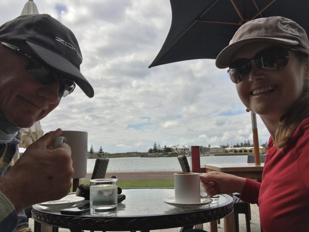 We finished our final veal, cranberry and chestnut sausages from the Margaret River region, served with eggs in a herb focaccia. Not too bad for Sunday morning breakfast, cooked up by chef Mr A on the Baby Q – delicious!
