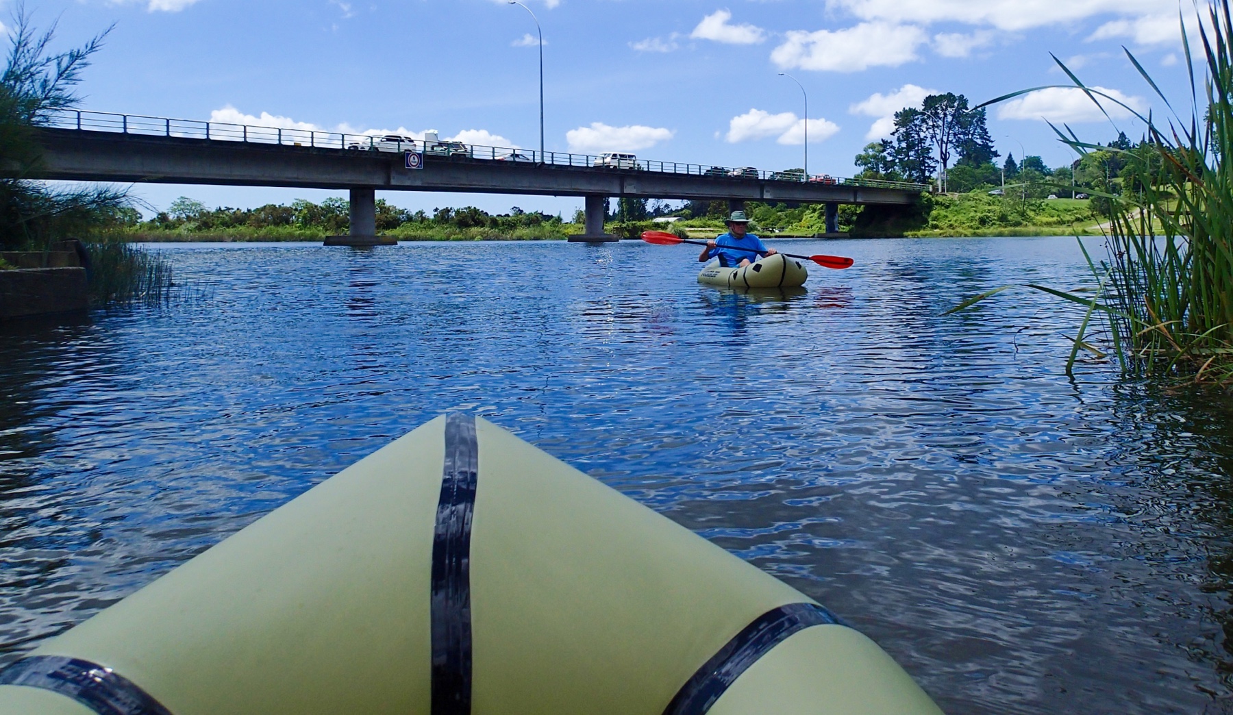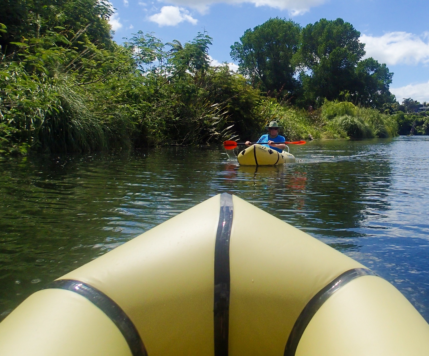 After a couple of hours of fine hospitality we farewelled Pat and Bill and headed off down to the Wairoa River. Initially we had thought we could cruise on down on our packrafts from the upper reaches, but Bill had advised us of flaws in our plan – firstly, the river is tidal, so we would be starting against the water, and secondly, its about 14km – about three times as far as we usually paddle in our inflatable packrafts.