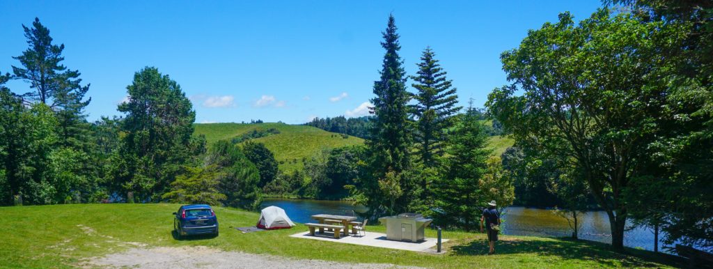 A site of our own…Lakeside views, a picnic table, gas BBQ and a private toilet…what more could we want?Plenty of black swans here Tuis enjoying the nectar