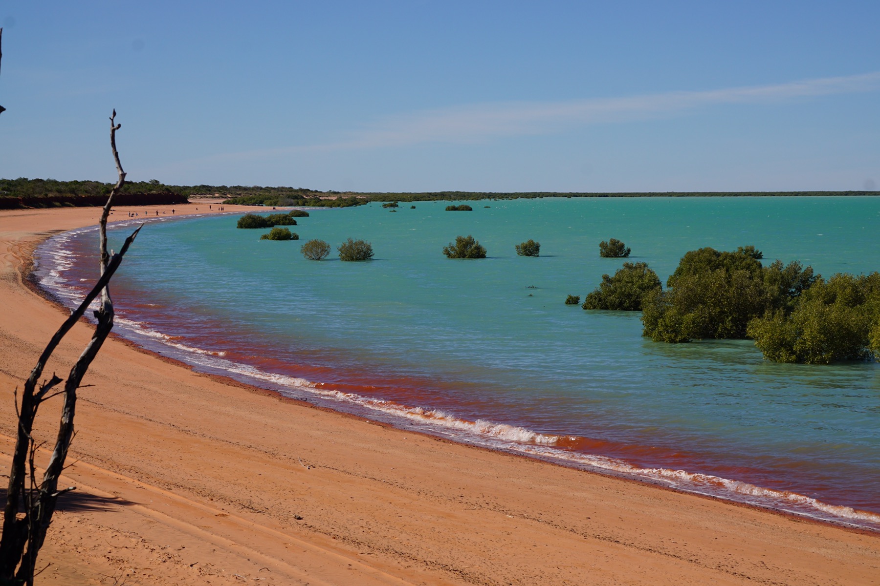 As tends to be the case, our change in direction and plans was not bad. We passed the outer southern side of Karijini National Park and a final gorge which is visited by few. This made it our favourite location as we pulled in for lunch, and then hiked down into the gorge. What a fabulous spot. Absolutely stunning reflections and rippling sediments in the walls which any landscape designer would be jealous of. We sat for a while with our feet in the water, enjoying the serenity and watching the fish swimming beneath us, cautiously eyeing my blood-orange coloured toenails.