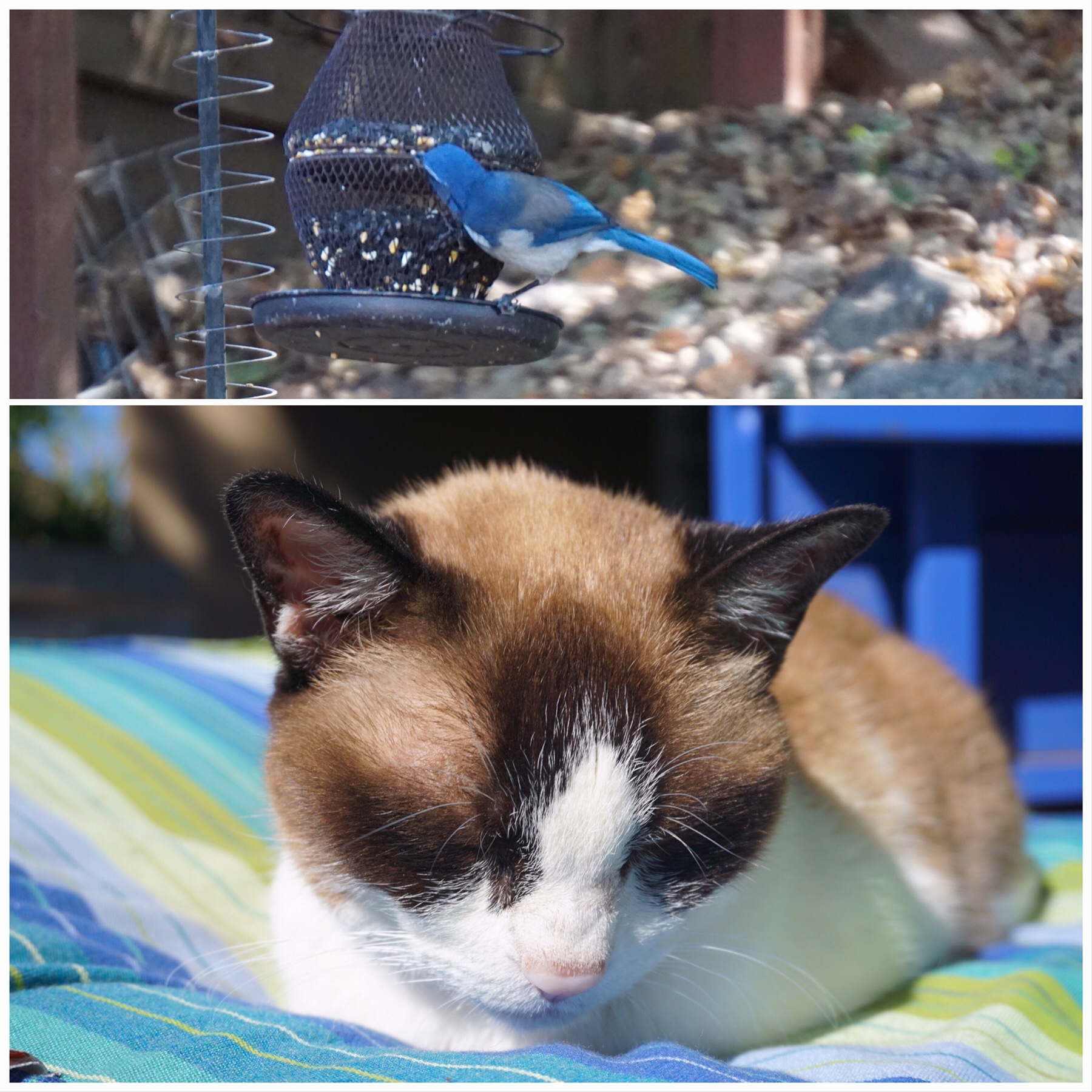 It seems crazy to be in Napa and not going wine tasting, but someone (Mr A) needed an afternoon nap, so we returned home for just that. I chilled out in the garden with one of Susan and Joe’s cats, Olly, watching out for local birdlife.