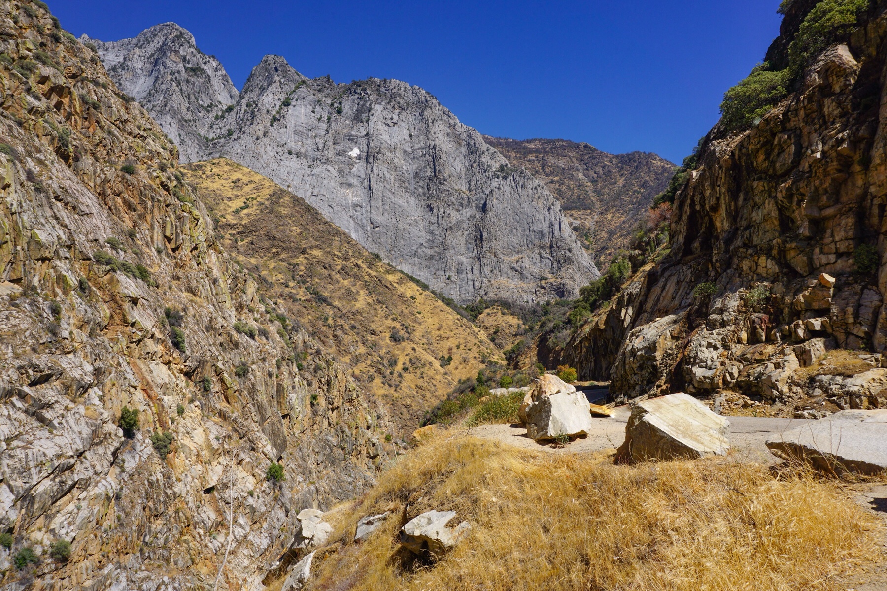 We followed the Kings River for a couple of kilometres before we were stopped by a couple of National Parks officials about to detonate some fallen rocks. In interest of our health and making it safely beyond today, we retraced our steps to the car and drove on.