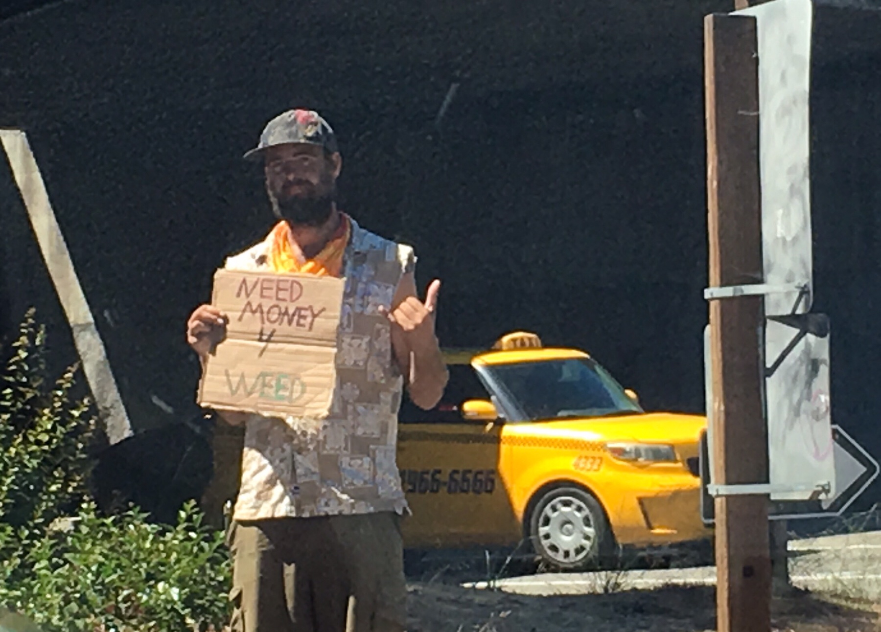When we stopped at a junction just outside Santa Barbara, we spotted this young guy with an interesting proposition.