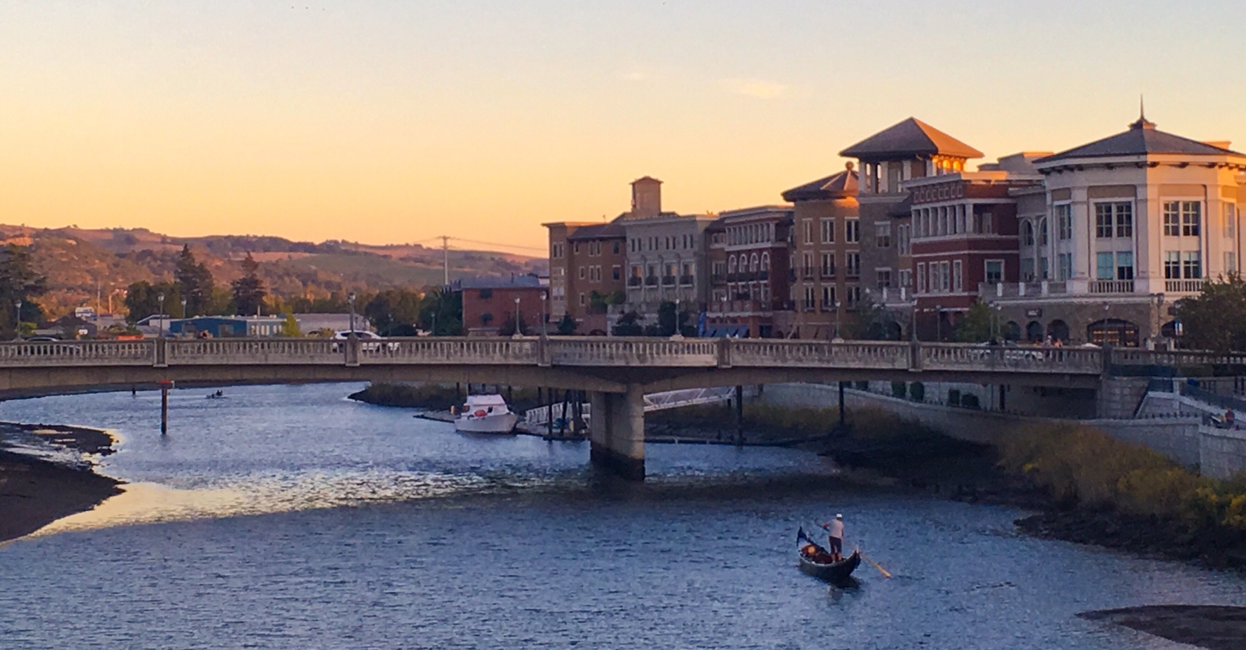 Walking through Napa town, you could have been mistaken for thinking we were somewhere in northern Italy, with the sun setting over the hills and the gondola paddling up the Napa River. It has a lovely feel, with nice boutiques and a buzzing atmosphere.