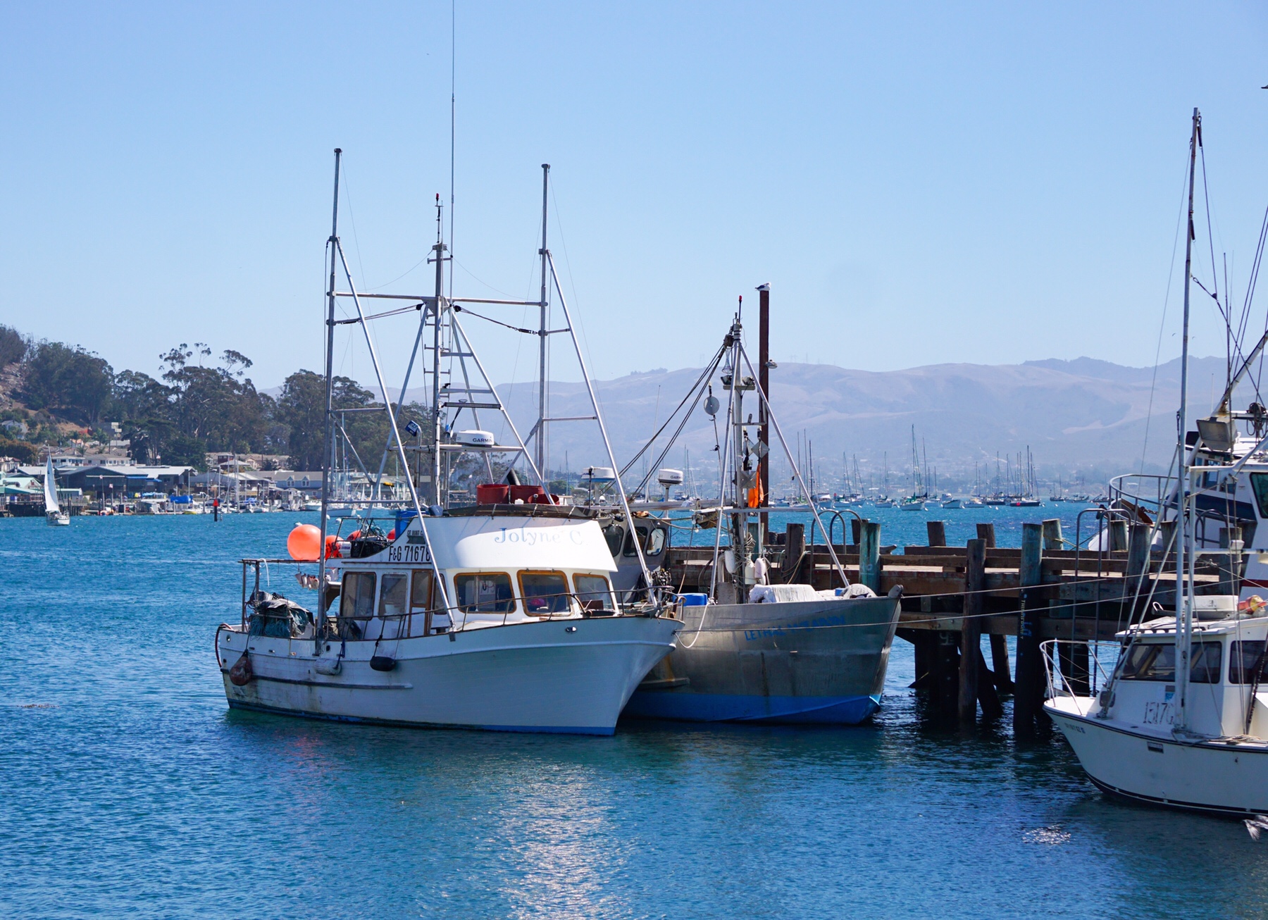 Before long, Tim and Dave had returned from their 80km cycle (!) and were feeling ravenous for lunch, so we piled into a couple of cars and headed 30 minutes towards the coast to the fishing town of Morro Bay.
