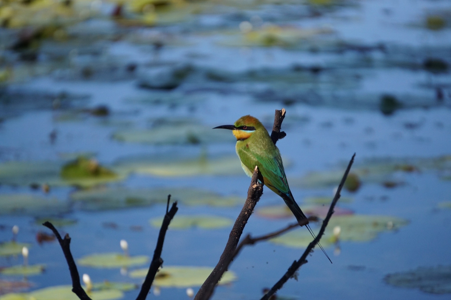 We decided it was a clean up morning and did a bunch of washing, mostly in our on-board 2kg machine…so…many loads later we were done and off for a romp around. We had booked a boat trip on the property that would take us up the Chamberlain Gorge, but first did a little bird watching as we had heard there were Goldian Finches in this particular watercourse we drove to. Alas, none were about, but we saw lots of other birds and just loved their serenity of being on our own in the Kimberley bush.
